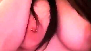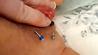 nippleringlover - horny milf pumping joy button, stretching labia, fingering pierced pussy lips