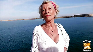 nippleringlover horny cougar extreme pierced nipples and pussy, changing nipple rings at public beach