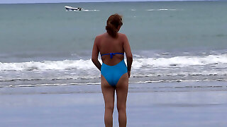 HAIRY step MOM ON BEACH VACATION, ON DISPLAY, MASTURBATES, URINE, HAIRY PUSSY, Bikini, Super-hot - ARDIENTES69