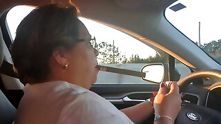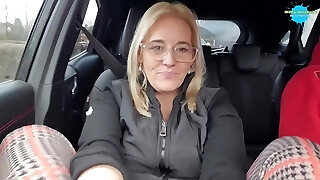 Squirting in car. Uber-sexy Milf stops car on side of road, drains pussy, gets strong moist orgasm. Squirt