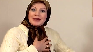 Hijab big good-sized ass booty white busty mature milf walking outdoor in sexy mini dress and flashing huge bubble backside in public