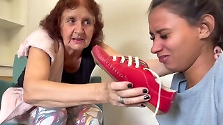 Super-steamy housewife Lukerya loves to create erotic clothes with mesh in different colors, complements the clothing with a leg de