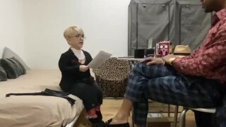 Gorgeous Midget Boss Babe flashes Sexy Bald & Black Applicant she has zero tolerance for lateness!