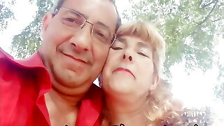 Old hairy pussy pissing in nature. Humid dirty vag outdoors. Close-up and POV. PAWG and white panties. Chubby milf. Publi