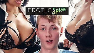 Ginger teen student ordered to headmistress office and fucked by his gigantic tits Latina teachers in internal ejaculation 3 way