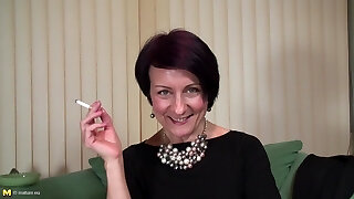Slutty Asian stepmom carefully sits down on a son's cock. Rides her ass on a prick and gets cum in her mouth