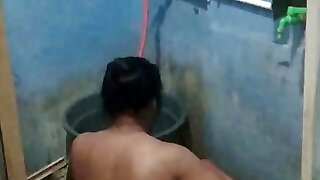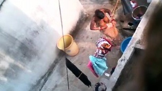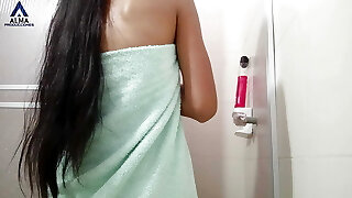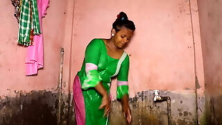 While the Desi stepmother washes hooter-sling & panties, stepmom took off the son's pants and Naked him, Then asks him to fuck her - Cum