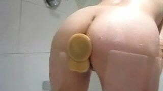 Mature lady did not hope that there would be a dick in her backside when she was washing in the bathtub