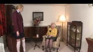 Blond mature lesbian likes to slurp teenage pussy so she convinces a cool girl to have lesbian sex