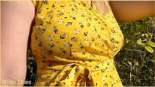 MarVal - Woman With Beautiful Dress Flashing Her Big Saggy Boobs On The Public And Doing Hand Job For Stranger