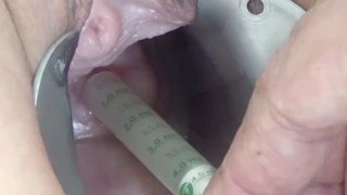 nippleringlover horny milf inserting bead chains thru extreme stretched pierced nipples big rings in pussy lips