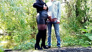 The stepson approached his stepmother and flashed her his excited cock, she is dazed but she likes it and she wants to jack him